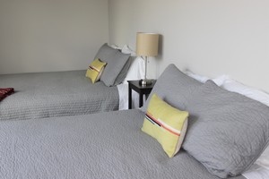 Guest have sole access to the entire private 750 SF Suite with 3 bedroom, 5 queen beds, and also to the shared common area just outside the suite. This area contains an additional breakfast bar, a large gathering table, and a lounging area. This suite can sleep up to 10.