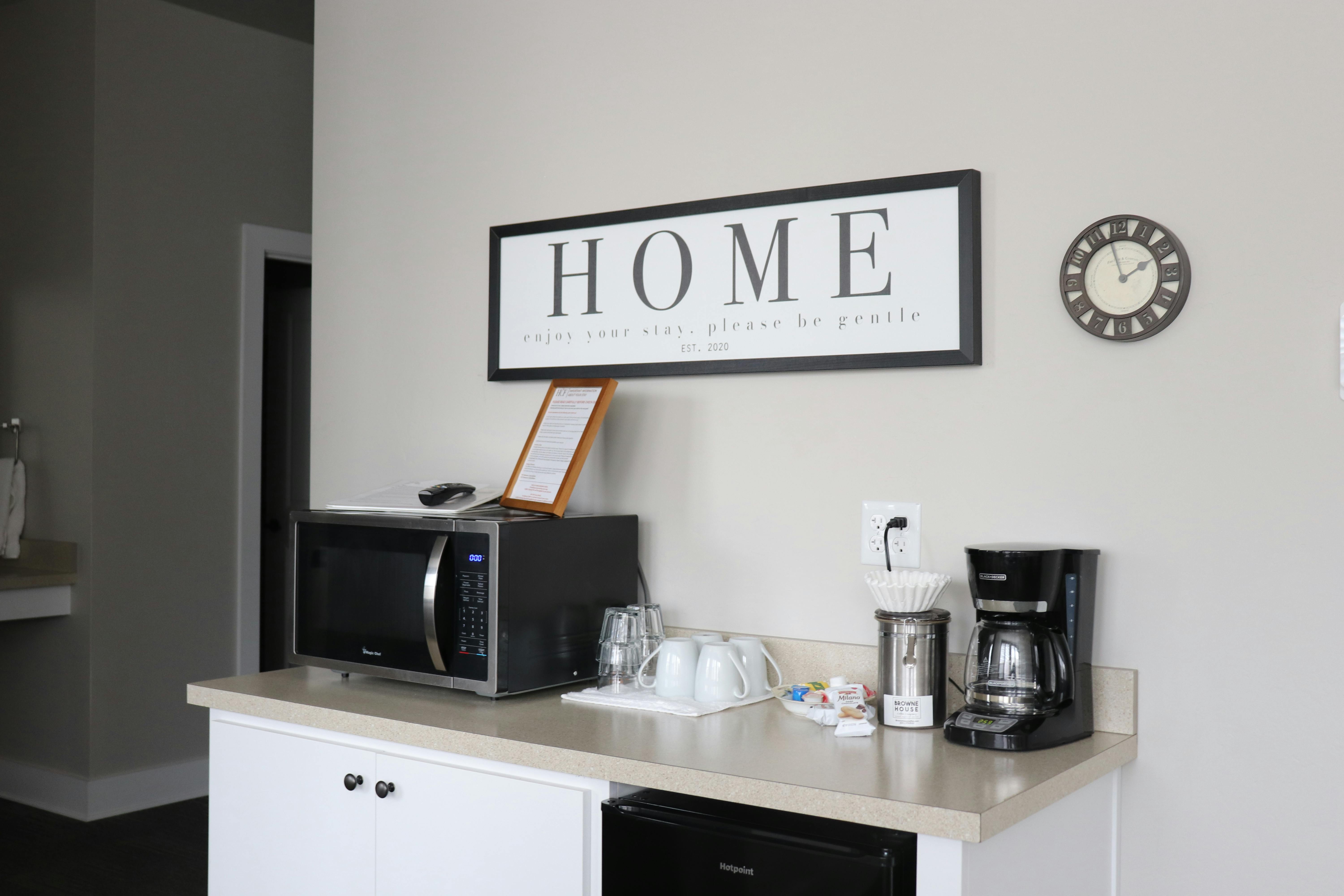 Balm Fork suite is handicap accessible with 2 bedrooms, and 4 queen beds (2 in each bedroom). First from the elevator! Includes coffee bar, mini-fridge, living room, and dining table. This suite can sleep up to 8.