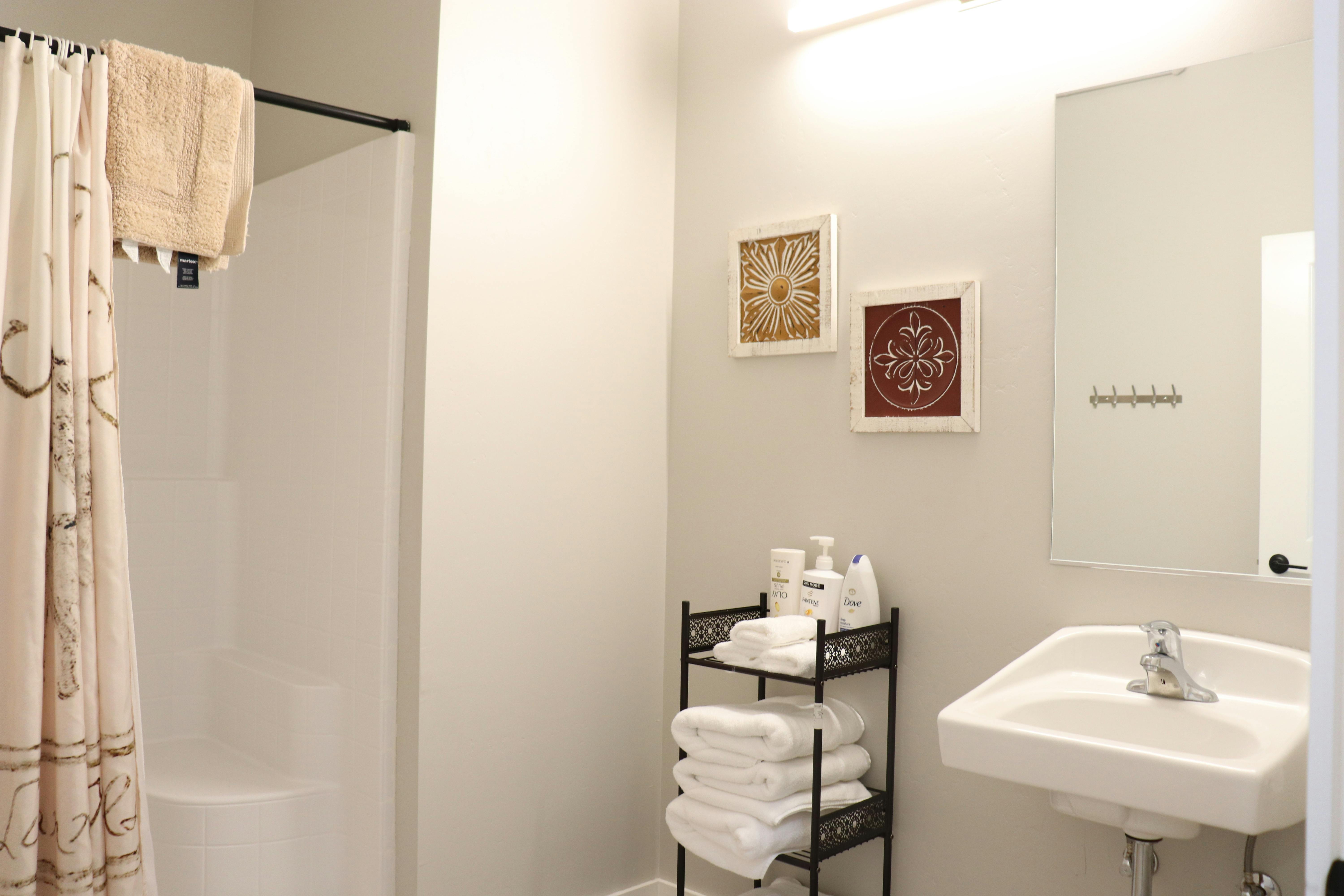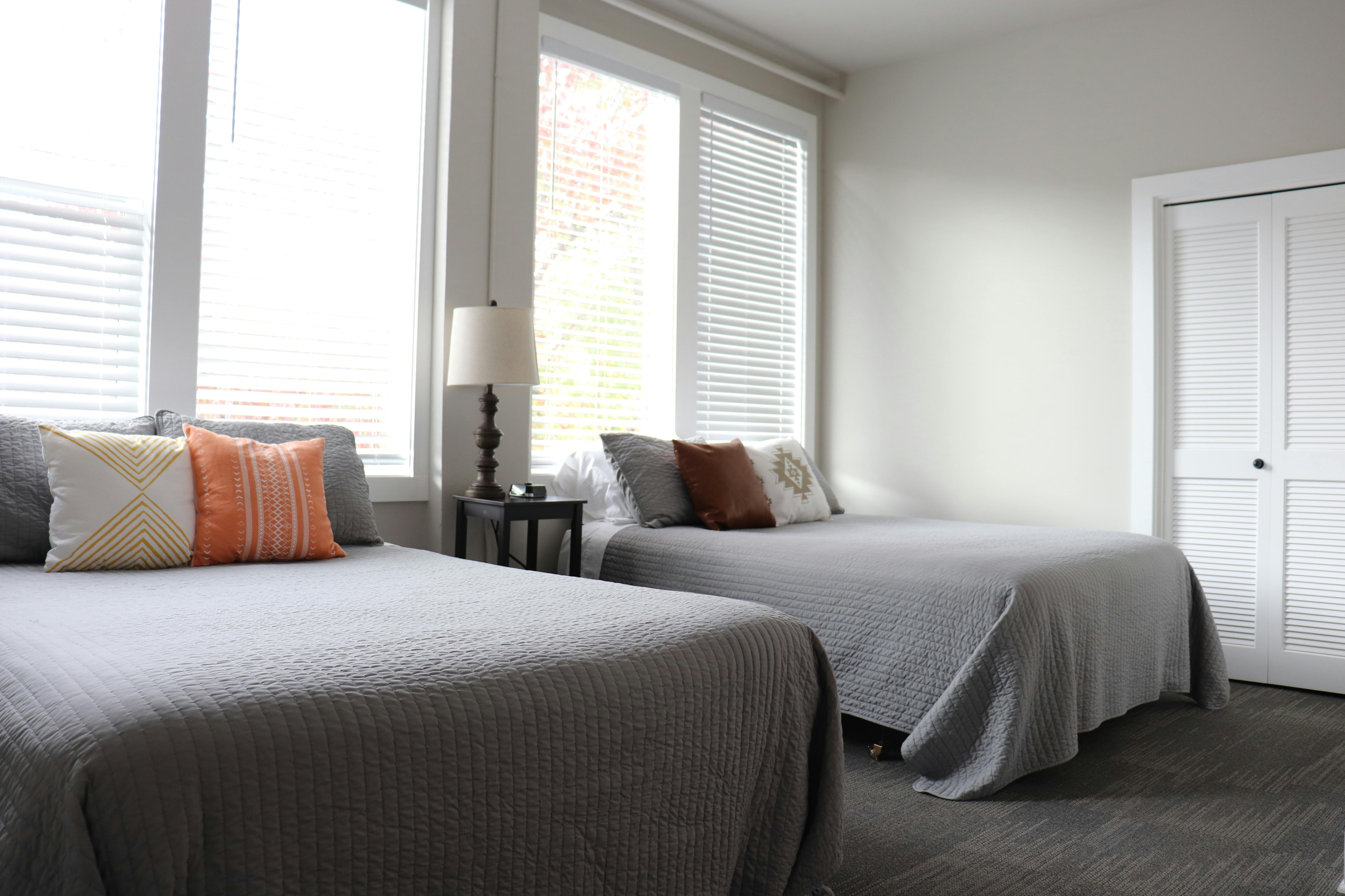 The suite includes private bathrooms, a breakfast bar, a living room, and three bedrooms. The television is for streaming from the guest's personal device as there is no cable. The Building has fiber-supplied Wi-Fi. The newly renovated building is ADA accessible. This space does not allow for cooking.